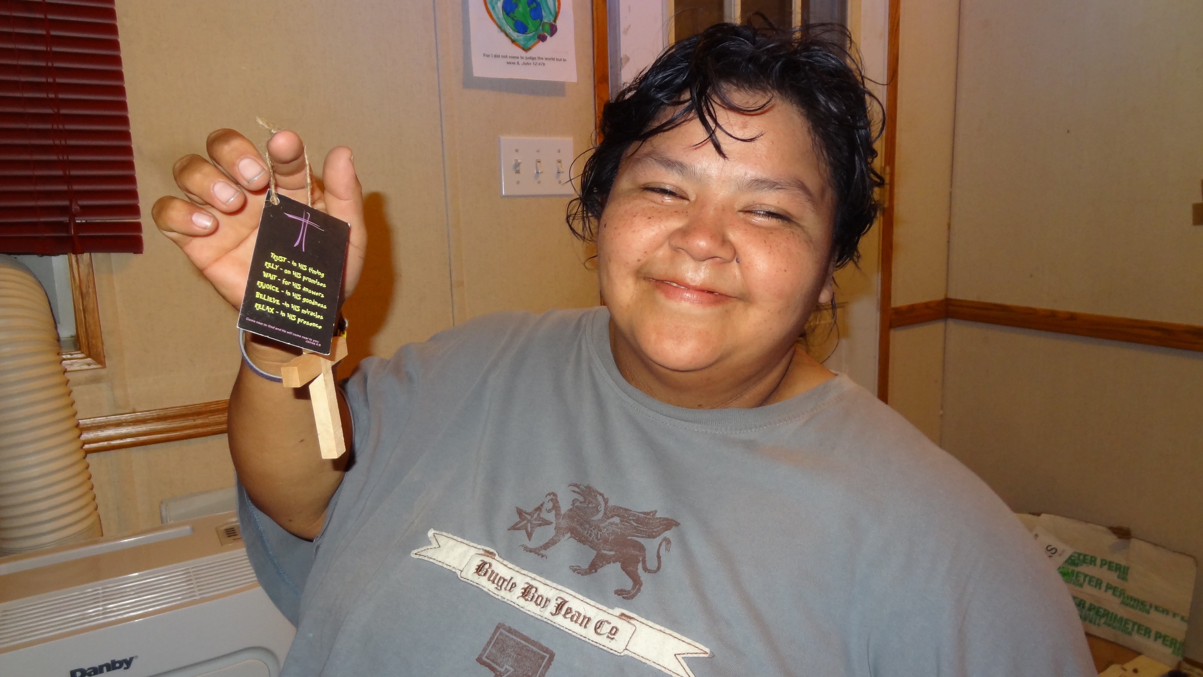 We were fortunate to receive the crosses prior to our trip this summer. As the Spirit led, we gave some of the crosses away when we were fundraising for our trip. A few examples included a car wash when one person we gave the cross to said “my husband died 3 weeks ago and I am so lost,” she held the cross to her heart and said “bless you for sharing”. Another person was on her way back home with her child after being released from a “safe house” for battered women. After giving her a cross we had a wonderful conversation and shared scriptures with each other. When it was finally time to head North for our mission trip, we challenged each team member to give away a cross to someone before we boarded our plane in Winnipeg. Again we were able to bless people in many places including a coffee shop, gas station, the check-in-desk at the airport, and a variety of other places.