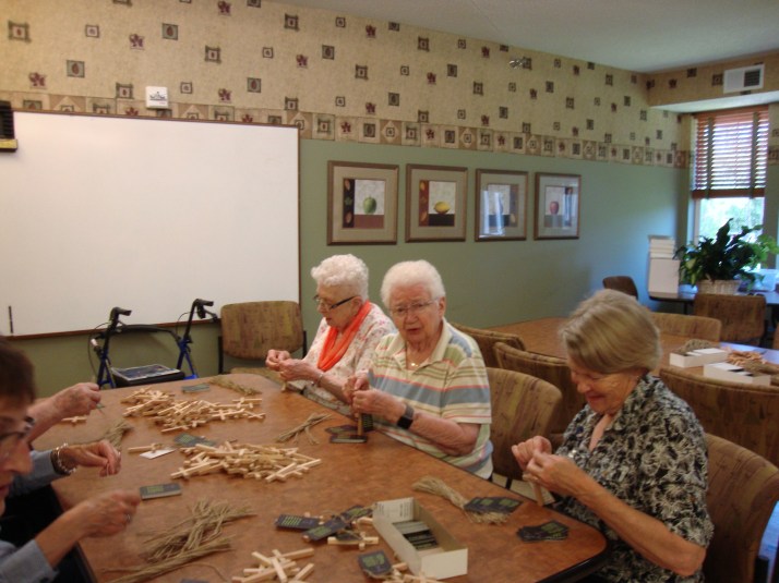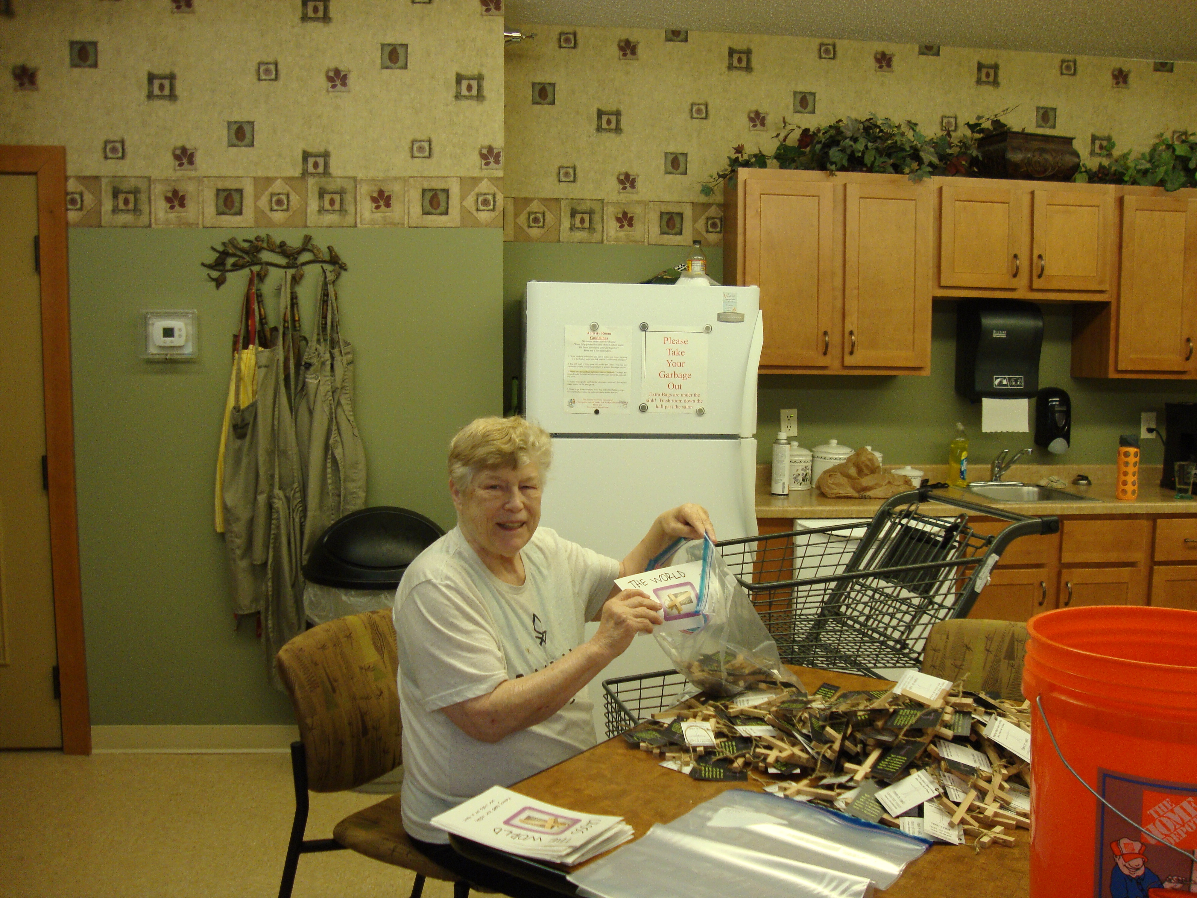 In January, 2015, we introduced you to our ‘Happy Hands, Happy Hearts’ volunteer work force, residents of Heartwood Senior Living in Crosby, MN. The first Monday of every month, Ernie brings them 5-gallon pails of crosses and all the supplies needed to string, tag and bag those crosses. When we started working with them, the total number of crosses completed in about an hour was 600. Not only have these diligent, dedicated ladies (and sometimes there is a man or two who will pop his head in but is usually scared away by the chatter and laughter!) continued their involvement in our ministry but they have also picked up speed … completing about 2000 crosses in the same time!
