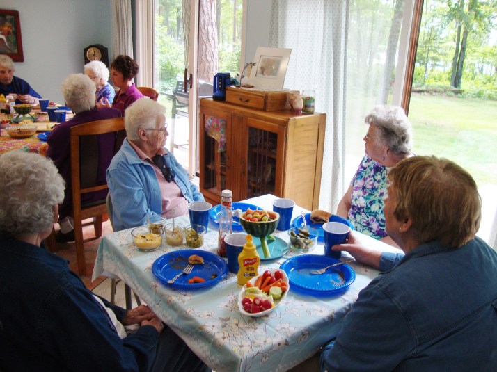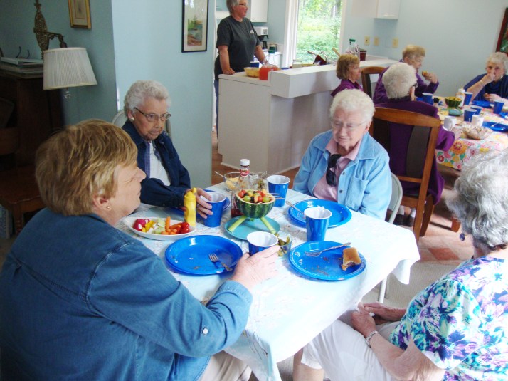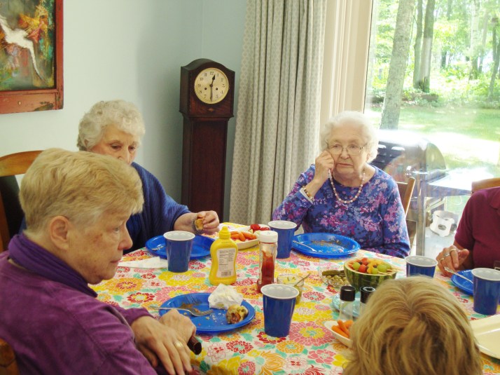 And, so, no good deed goes unattended. Here’s the same gals at our house a couple of weeks later, enjoying an indoor picnic with us. It was a great time … good food, lots of laughter, tons of fellowship, mountains of love! (Trust me … they DID have a good time. I guess I’ll have to remind them to smile the next time I snap their picture!~!~!)