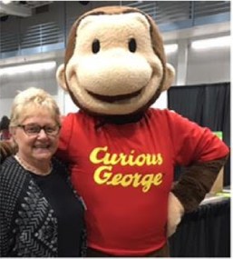 Across from our both was Houghton Book Co. with Curious George. He drew people and then we invited them over to our booth. It was great.