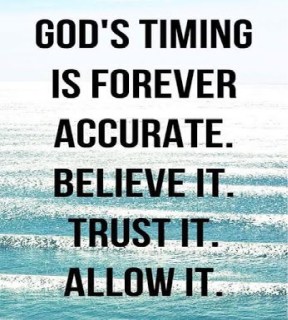 Dear God, sometimes I don’t understand Your timing. It’s hard to wait, but I trust You. I want to rely on Your ways, Your thoughts and Your perfect timing. Help me learn what I need to learn as I wait, and help me resist rushing Your plan. In Jesus’ Name, Amen.’