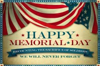 We will observe MEMORIAL DAY and the NATIONAL MOMENT OF REMEMBRANCE on Monday, the 28th.
